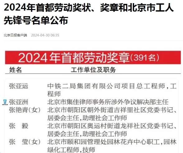 >NG28>新闻动态>集佳合伙人张亚洲律师荣获2024年首都劳动奖章